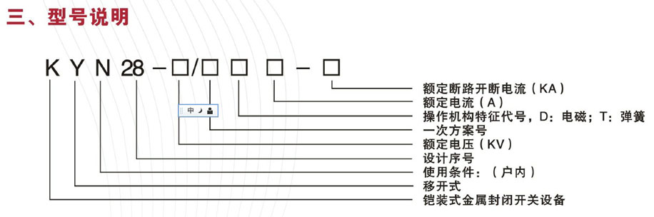 >KYN28A-鎧裝型移開式金屬封閉開關(guān)柜,是三相交流50Hz單母線及母線分段系統(tǒng)的戶內(nèi)成套配電裝置,主要用于接受及分配3-10KV電網(wǎng)電能,并實(shí)現(xiàn)電路控制、保護(hù)和檢測。該開關(guān)柜能滿足IEC298, GB3906等標(biāo)準(zhǔn)的要求,并具有安全可靠的“五防”功能。它可以配用VD4系列、VS1系列、VK系列真空斷路器,具有分?jǐn)嗄芰Υ螅w積小,操作安全方便,是一種性能優(yōu)越的開關(guān)柜。