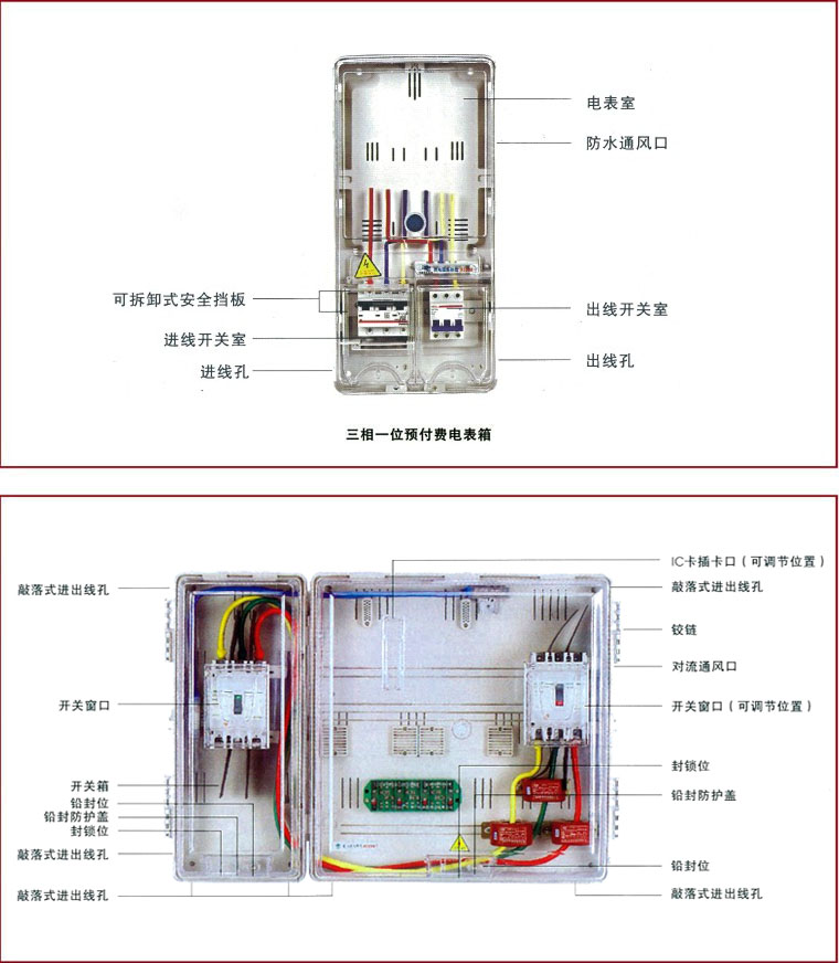 >本產品采用透明設計,透明材料的采用不僅直觀,而且可以及時的發現表箱內的各類異常現象,提前排除用電中的安全隱患,真正達到用電安全,預防為主的宗旨。