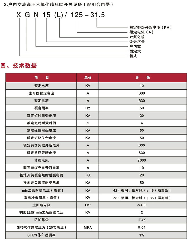 XGN15一12(L)型戶內(nèi)交流高壓六氟化硫環(huán)網(wǎng)