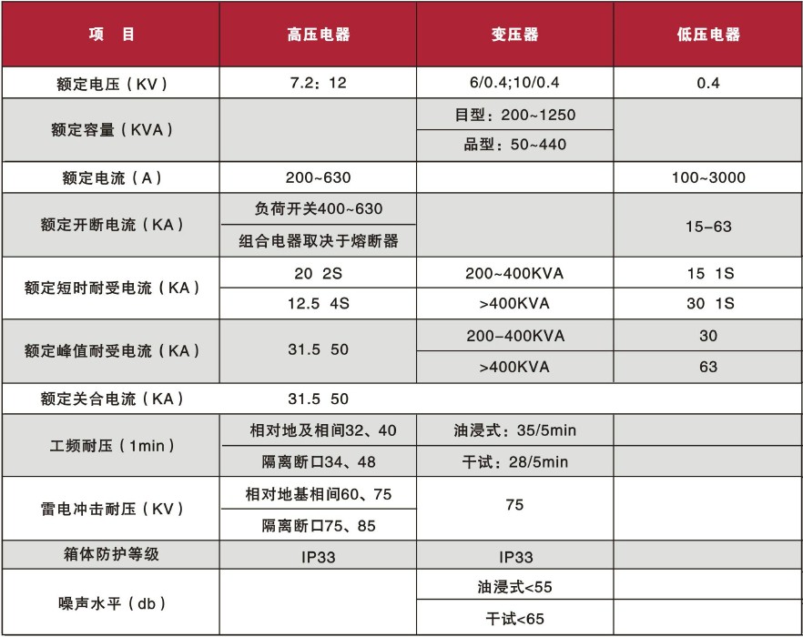 本產(chǎn)品由高壓配電裝置,變壓器及低壓配電裝置聯(lián)接而成。分成三個功能隔離室,即高壓室、變壓器室和低壓室,高低壓室功能齊全,高壓室由環(huán)網(wǎng)柜組成一次性供電系統(tǒng)布置成環(huán)網(wǎng)供電、終端供電、雙電源供電等多種供電方式。還可裝設(shè)高壓計量的要求,變壓器可選擇油浸式變壓器和干式變壓器。變壓器室設(shè)置起動強迫風冷系統(tǒng),低壓室根據(jù)用戶要求可采用面板或柜裝式結(jié)構(gòu)組成用戶所需供電方案,有動力配電、照明配電、無功功率補嘗,電能計量等多種功能,滿足用戶的不同要求,并方便用戶的供電管理和提高供電質(zhì)量。